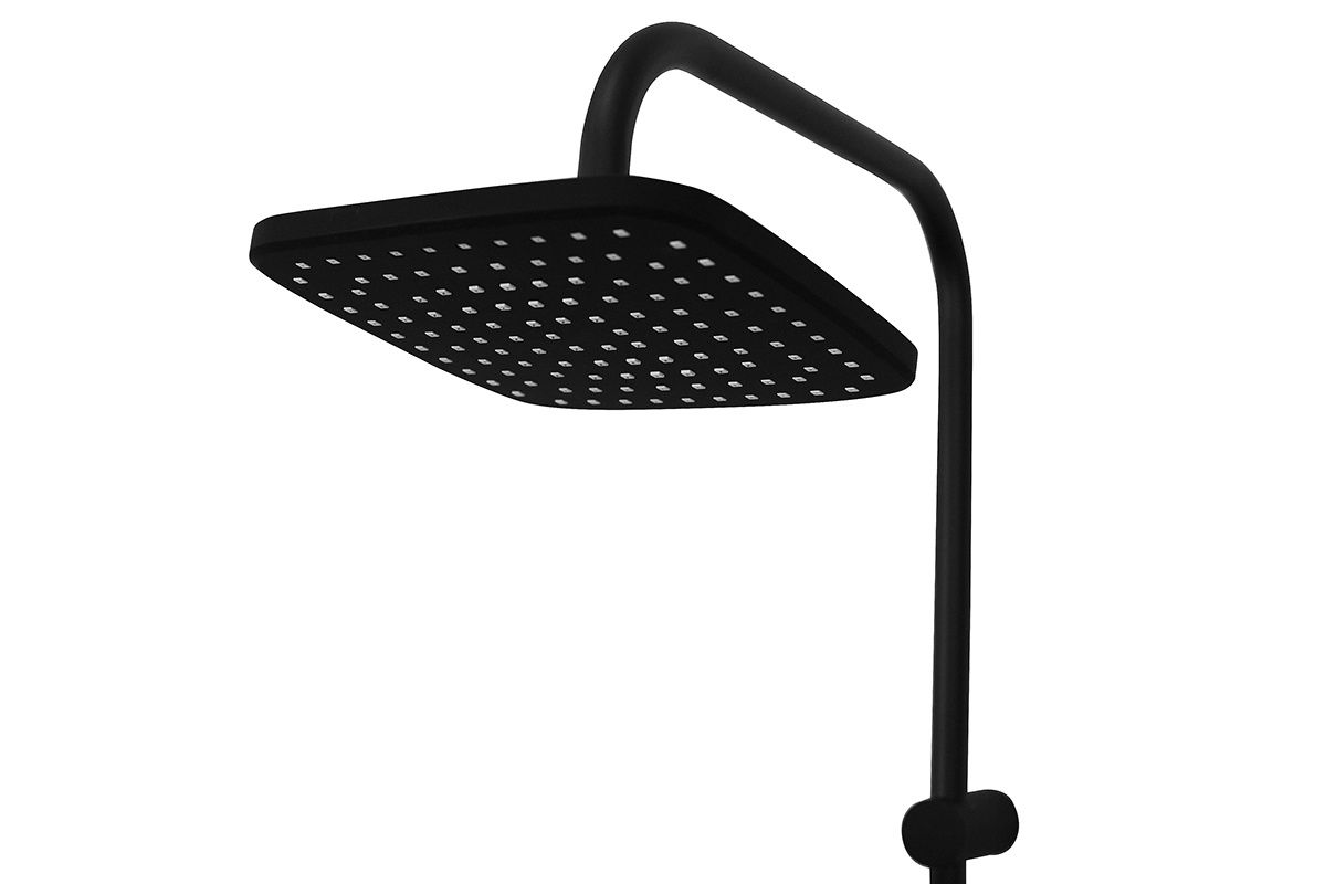 Душевая система в комплекте: однозахватный смеситель для ванны с изливом (190 мм.) и керамическим картриджем, верхний душ 230х230 мм. и ручной душ 120 мм (1 режим) с защитой от известкового налета, регулируемый по наклону держатель верхнего и ручного душа, душевой шланг 1,5 м. (в металлической оплетке, с защитой от перекручивания), керамический дивертор. Штанга 970 мм. с возможностью установки в старые отверстия. Цвет матовый черный, за которым просто ухаживать мягкой салфеткой, получен порошковой окраской с многоступенчатой системой подготовки и высокотемпературной обработкой.