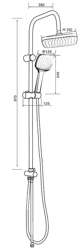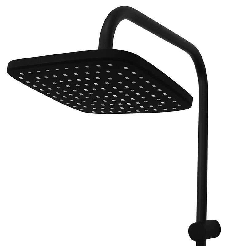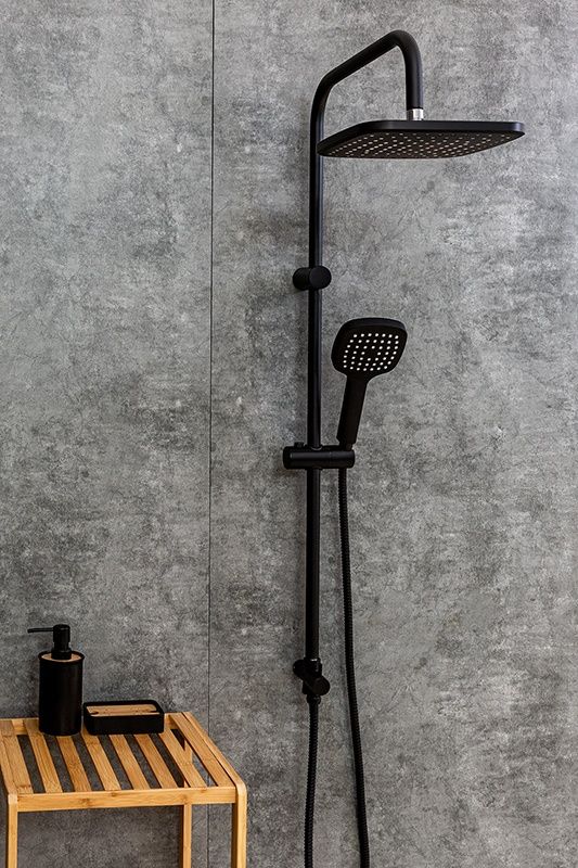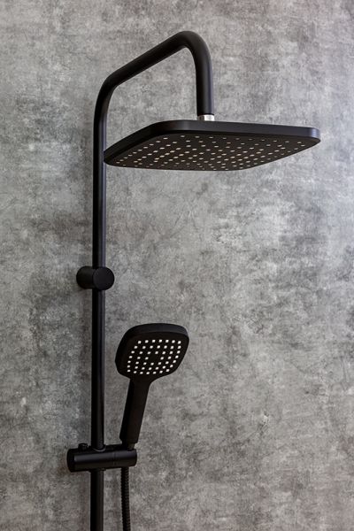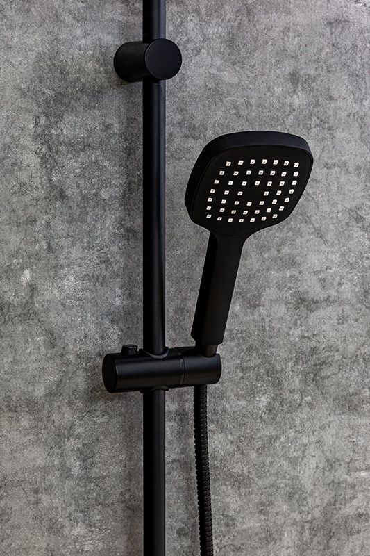 Душевая система в цвете черный матовый: верхний душ (230х230 мм) создаёт эффект тропического дождя, что дарит непередаваемые эмоции во время ежедневных банных процедур. Ручной душ 120 мм (1 режим) на гибком полутораметровом шланге (в металлической оплетке) с защитой от перекручивания. Держатели верхнего и ручного душа с регулировкой угла наклона, штанга 970 мм. Подвижные детали отличаются долговечностью. Фиксируется душевая система непосредственно на стене, что позволяет рационально использовать ограниченное пространство ванной комнаты. Модное на сегодняшний день покрытие чёрного цвета, за которым просто ухаживать мягкой салфеткой, получено порошковой окраской с многоступенчатой системой подготовки и высокотемпературной обработкой.