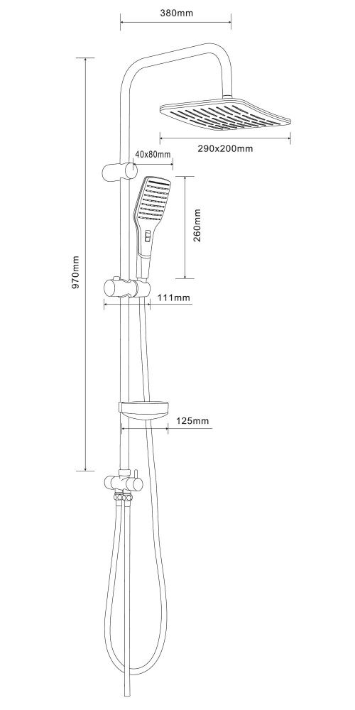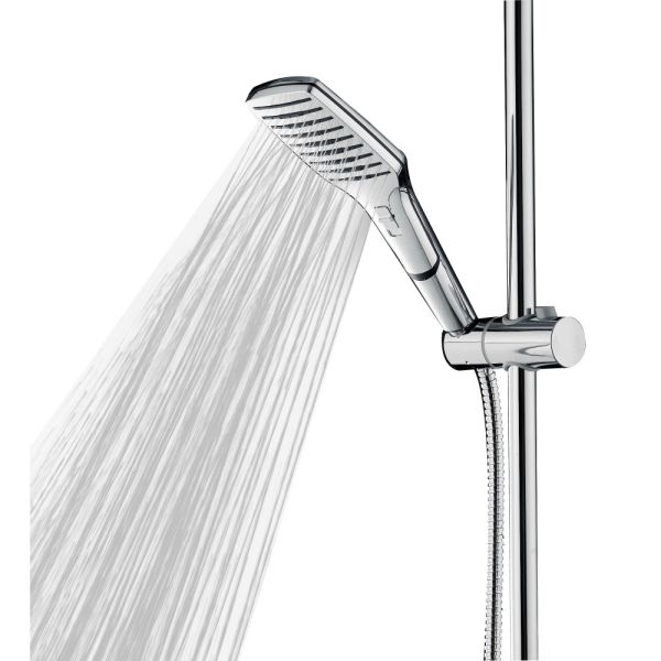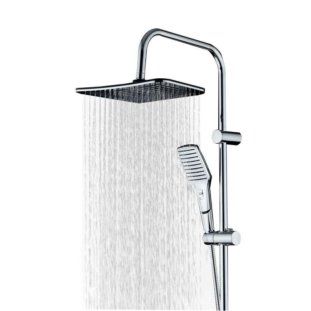 Душевая система в цвете глянцевый хром: верхний душ (290х200 мм) создаёт эффект тропического дождя, что дарит непередаваемые эмоции во время ежедневных банных процедур. Ручной душ 40х80 мм (2 режима) на гибком полутораметровом шланге (в металлической оплетке) с защитой от перекручивания. Держатели верхнего и ручного душа с регулировкой угла наклона, штанга 970 мм. с подвижным держателем (возможность установки в старые отверстия). В комплекте также переключатель потоков и пластиковая мыльница. Подвижные детали отличаются долговечностью. Форсунки верхнего и ручного душа с функцией легкого очищения от известкового налета.
