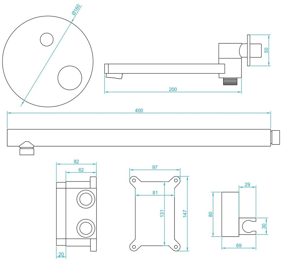 - Головной душ, горизонтальный держатель - нержавеющая сталь