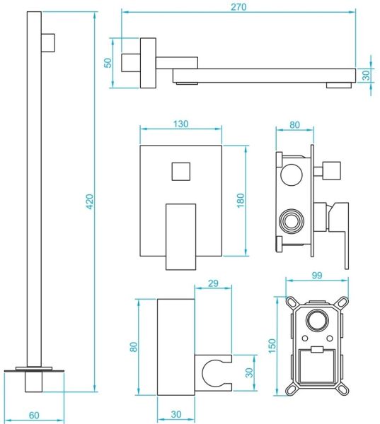 - Головной душ, горизонтальный держатель из нержавеющей стали. Головной душ оснащён шарнирным креплением, что позволяет выбрать необходимый угол направления воды