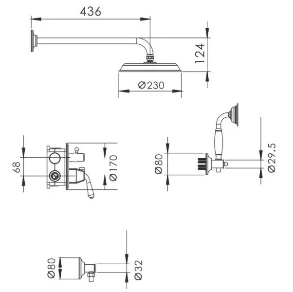 Душевая система встраиваемая Rose R0235E, золото.Монтаж: внутренний (скрытый).Стилистика дизайна: ретро.Управление: рычажное.Размер верхнего душа: 23x23.Форма верхнего душа: круглая.