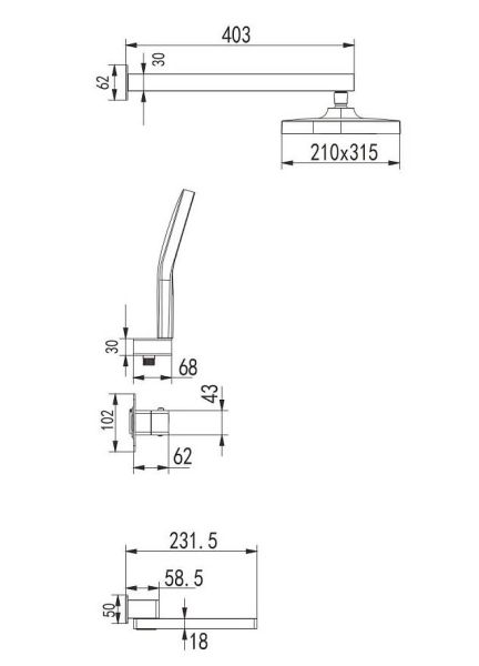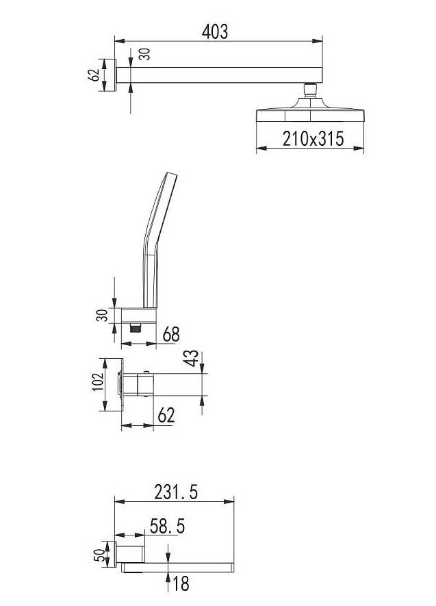 Размер верхнего душа, см:32