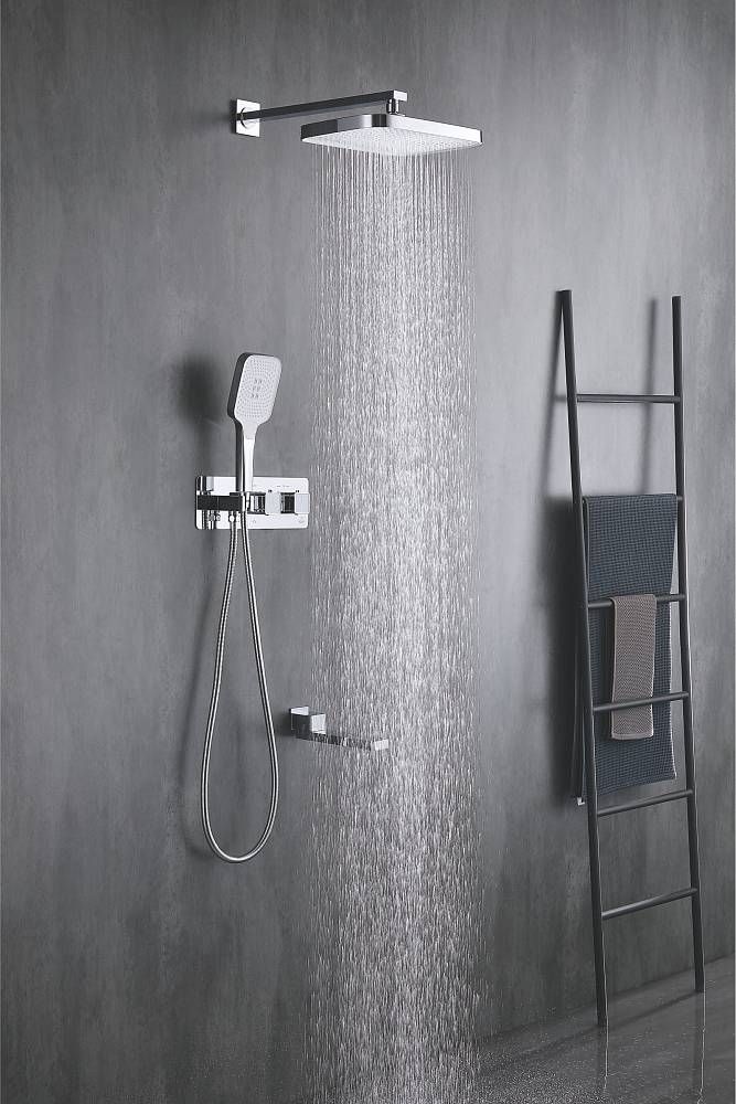 Душевая система с термостатом встраиваемая Rose R1095, хром.Монтаж: внутренний (скрытый).Стилистика дизайна: современный стиль.Управление: термостат.Размер верхнего душа: 31,5x21.Форма верхнего душа: прямоугольная.