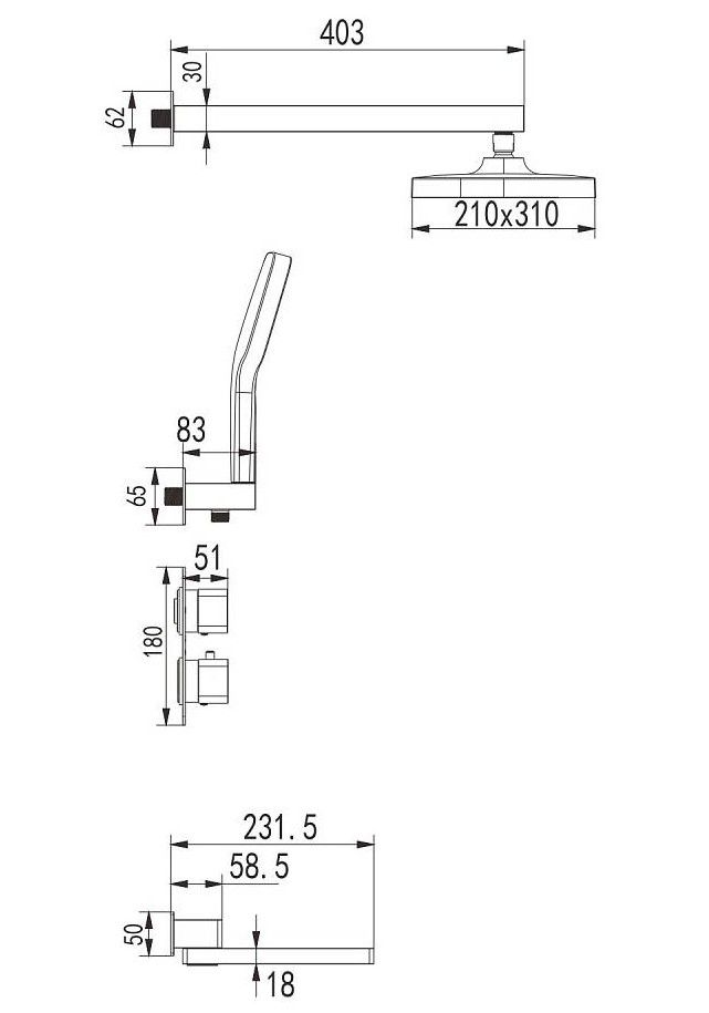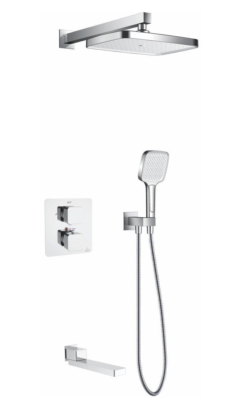Душевая система с термостатом встраиваемая Rose R1595F, белый/хром.Монтаж: внутренний (скрытый).Стилистика дизайна: современный стиль.Управление: термостат.Размер верхнего душа: 31x21.Форма верхнего душа: прямоугольная.