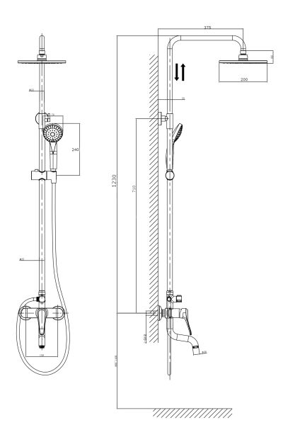 Тип:душевая система со смесителем