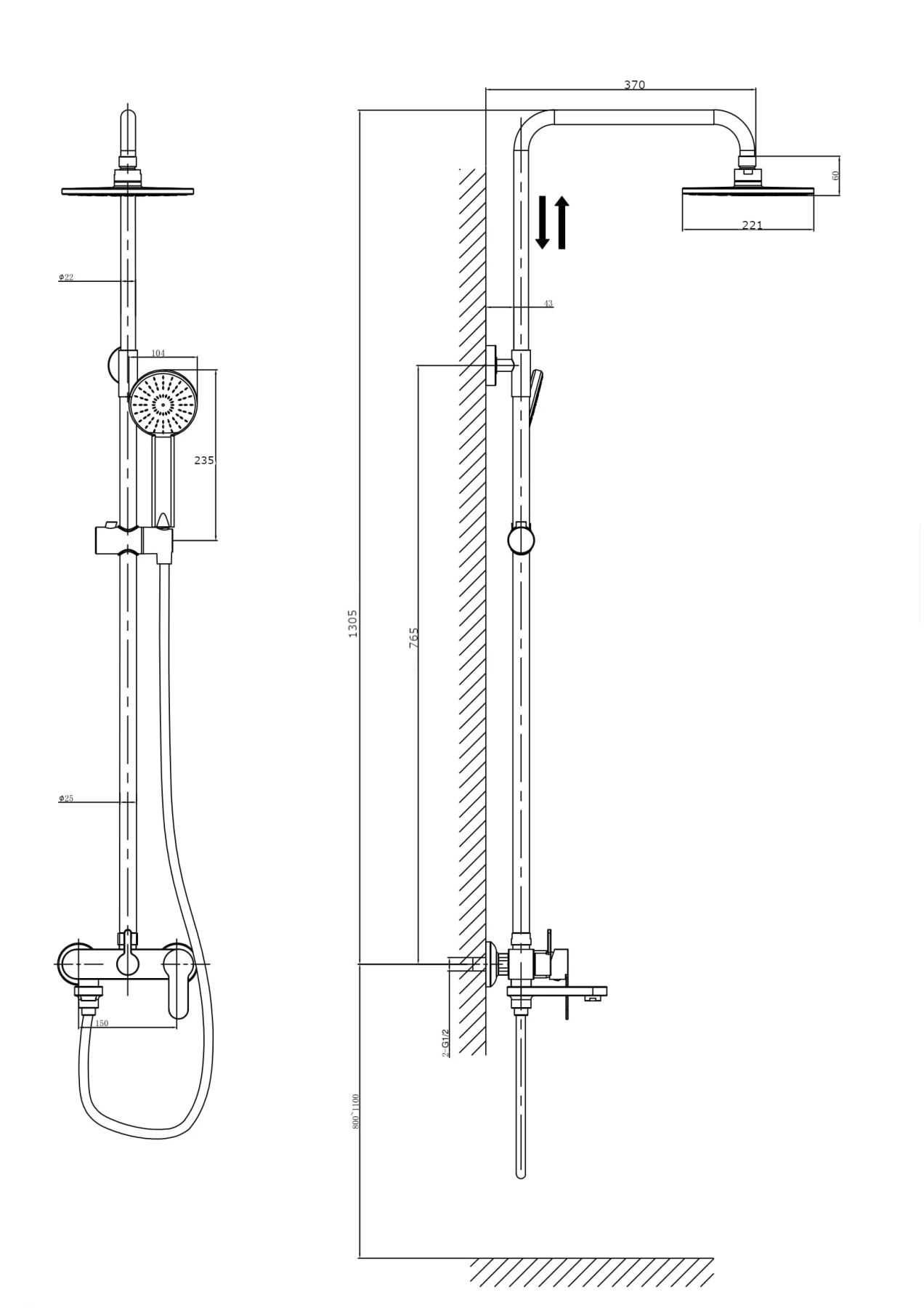Тип:душевая система со смесителем