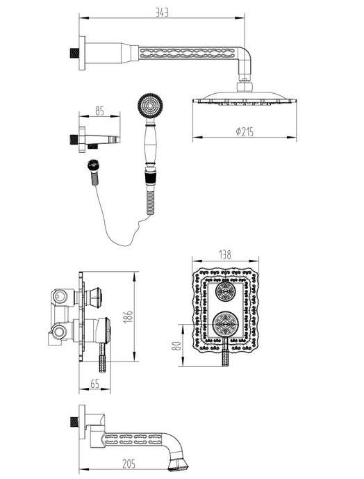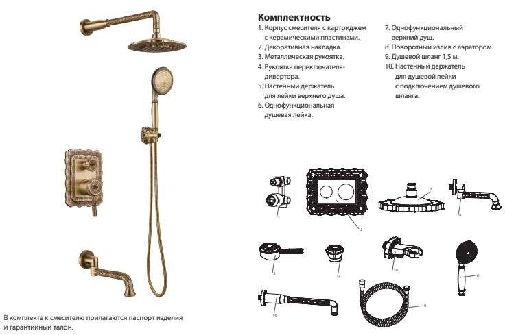 Душевая система ZORG выполнена из латуни с покрытием под бронзу.