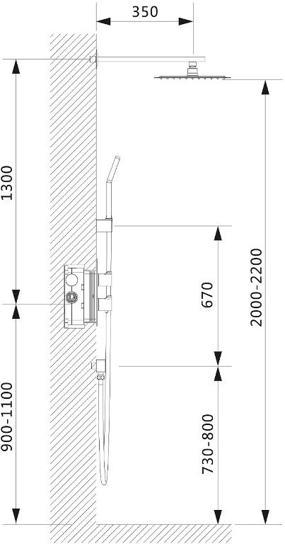 Душевая система скрытого монтажа, с термостатом с квадратной лейкой (латунь) в стиле модернДушевая система сделана из латуни класса А