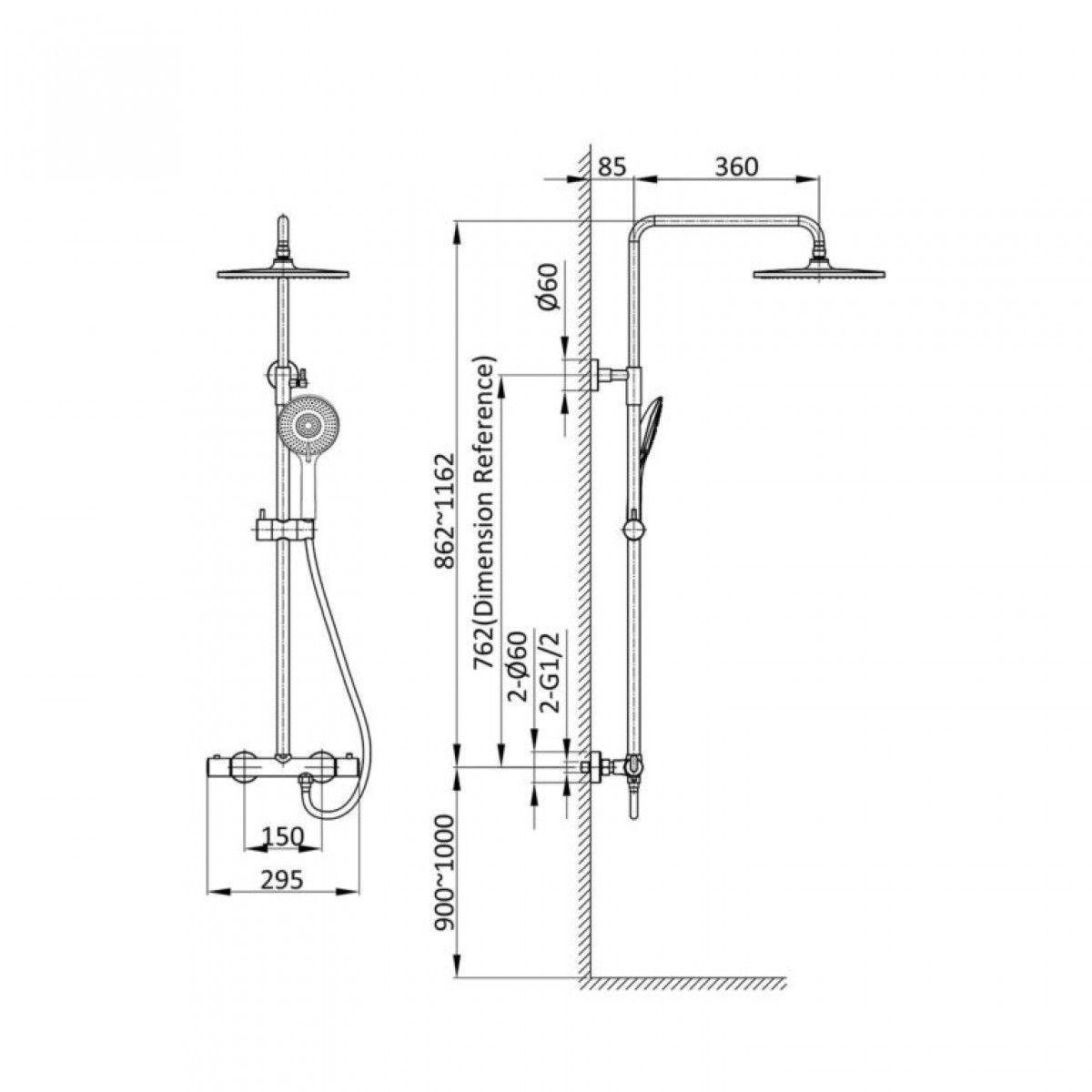 термостатФорма верхнего душа: