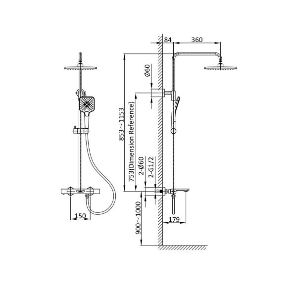 Душевая система Vincea Next VSFS-1N1TCH термостатическая хромСерия: