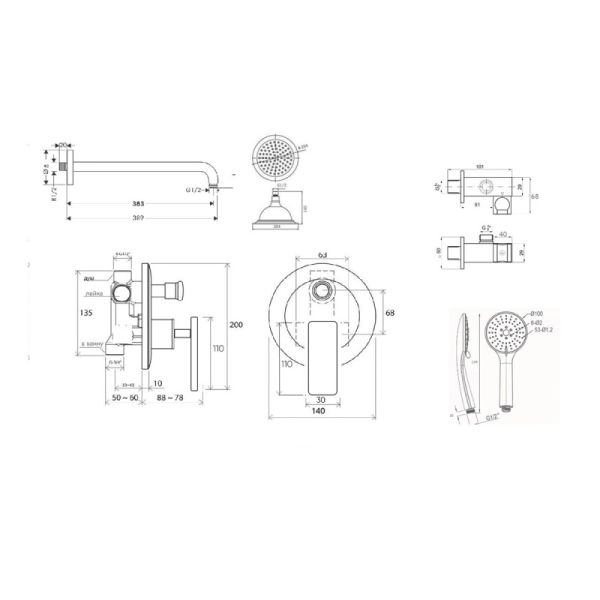 Душевая система встраиваемая Bronze de Luxe PURE A800/9143-2, хром