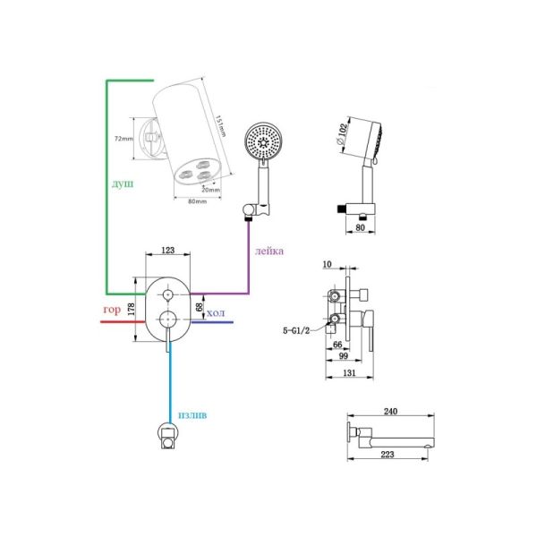 Душевая система встраиваемая Bronze de Luxe SCANDI 14582-501BR, бронза купить