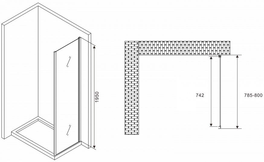 Размер (Ш*В): 800*1950 мм.Ориентация: универсальная.Толщина стекла: 6 мм.Профиль: хром.Стекло: прозрачное.