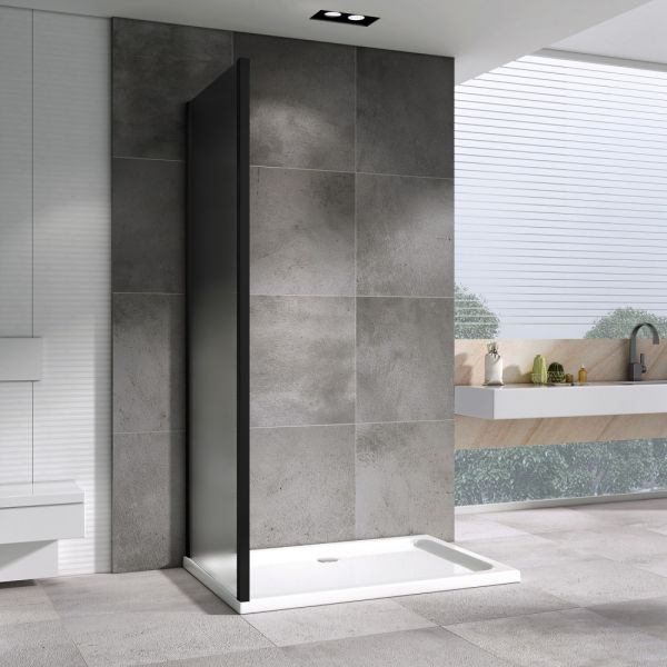 Размер (Ш*В): 800*1950 мм.Ориентация: универсальная.Толщина стекла: 6 мм.Профиль: черный.Стекло: матовое.