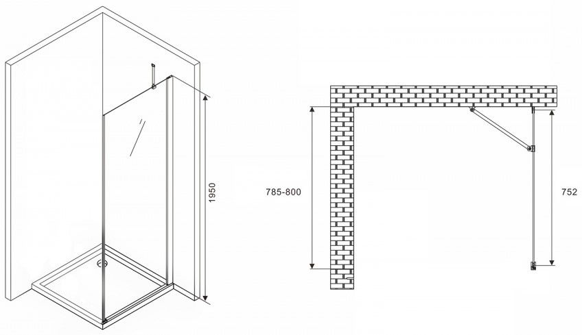 Размер (Ш*В): 800*1950 мм.Ориентация: универсальная.Толщина стекла: 6 мм.Профиль: хром.Стекло: прозрачное.