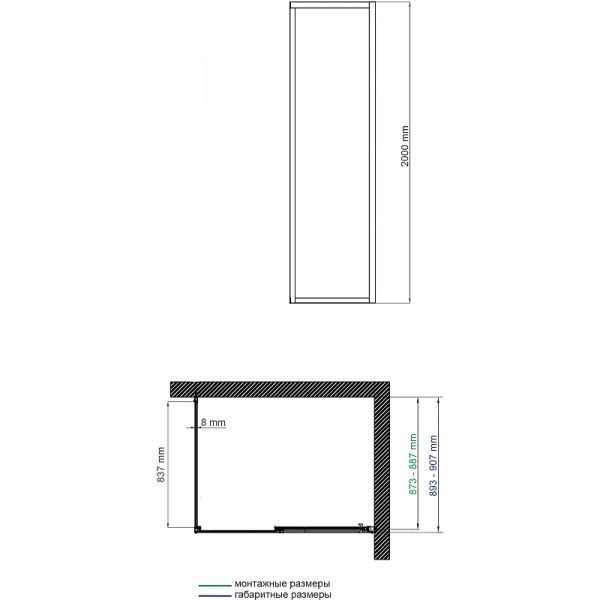 Душевая стенка WasserKRAFT Lopau 90 32S07-RP90 профиль Хром стекло прозрачное