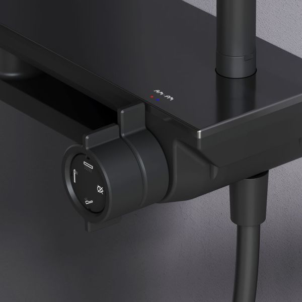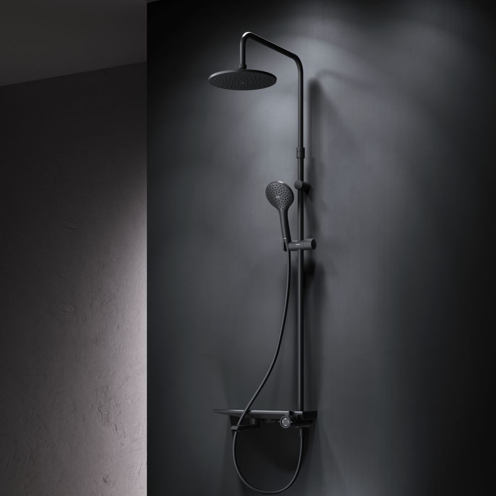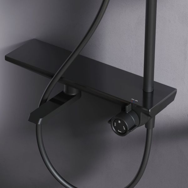 Душевая стойка Am.Pm Gem F0790722 с ванно-душевым смесителем-полкой чёрный