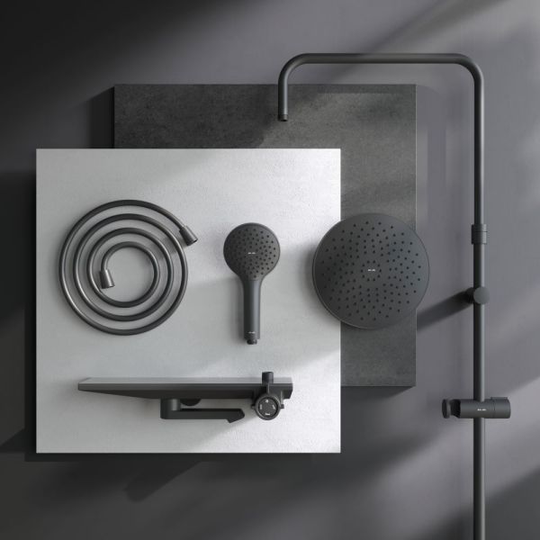 Тотальный дизайн в действии: все детали душевой системы – от пропорций ручного и верхнего душей до рисунка расположения форсунок на лейках – подчинены единой дизайн-концепции коллекции Gem.