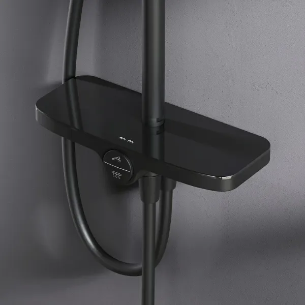 Душевая стойка Am.Pm Like F0780222 черныйДушевая система от бренда AM.PM коллекции Like представлена в современном дизайне – от пропорций ручного и верхнего душей до рисунка расположения форсунок на лейках. Цвет - черный матовый. Размер (Ш/Г/В): 254x569x1030-1460 мм. Материал душевой системы - латунь, ABS-пластик, нержавеющая сталь.