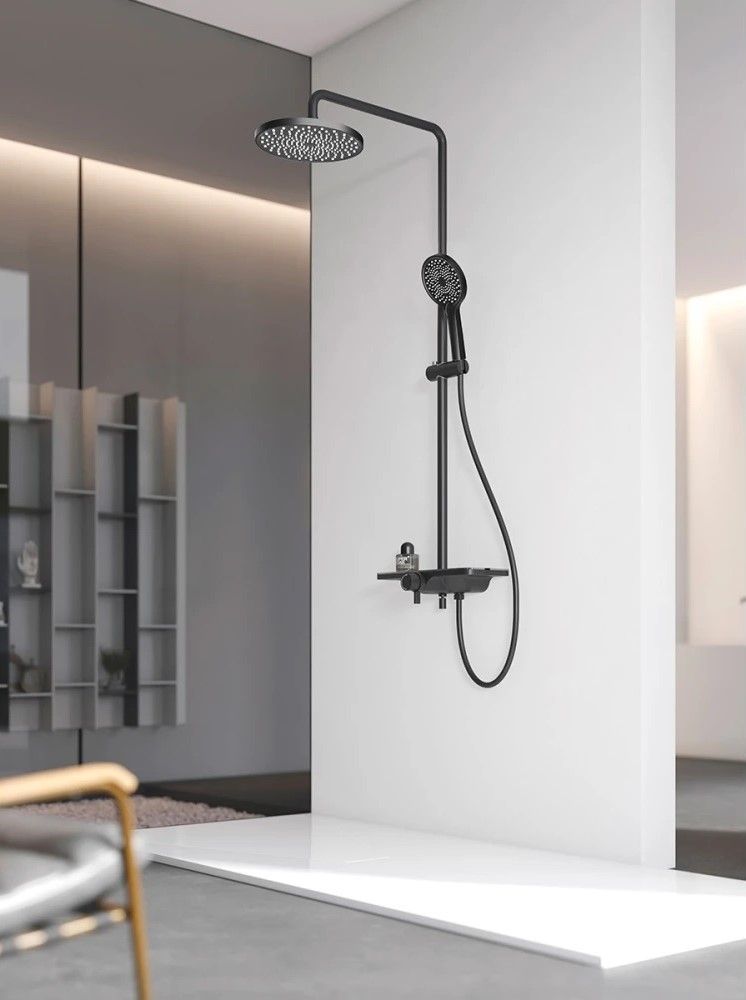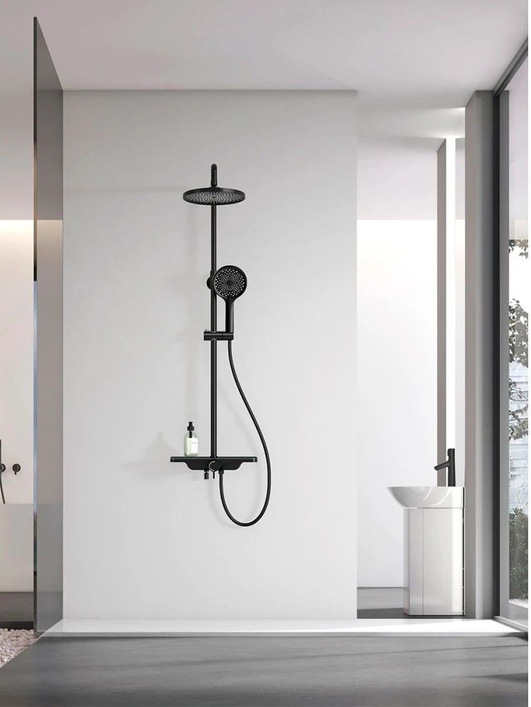 Душевая стойка AQUAme AQM8002B со смесителем чёрный матовый купить