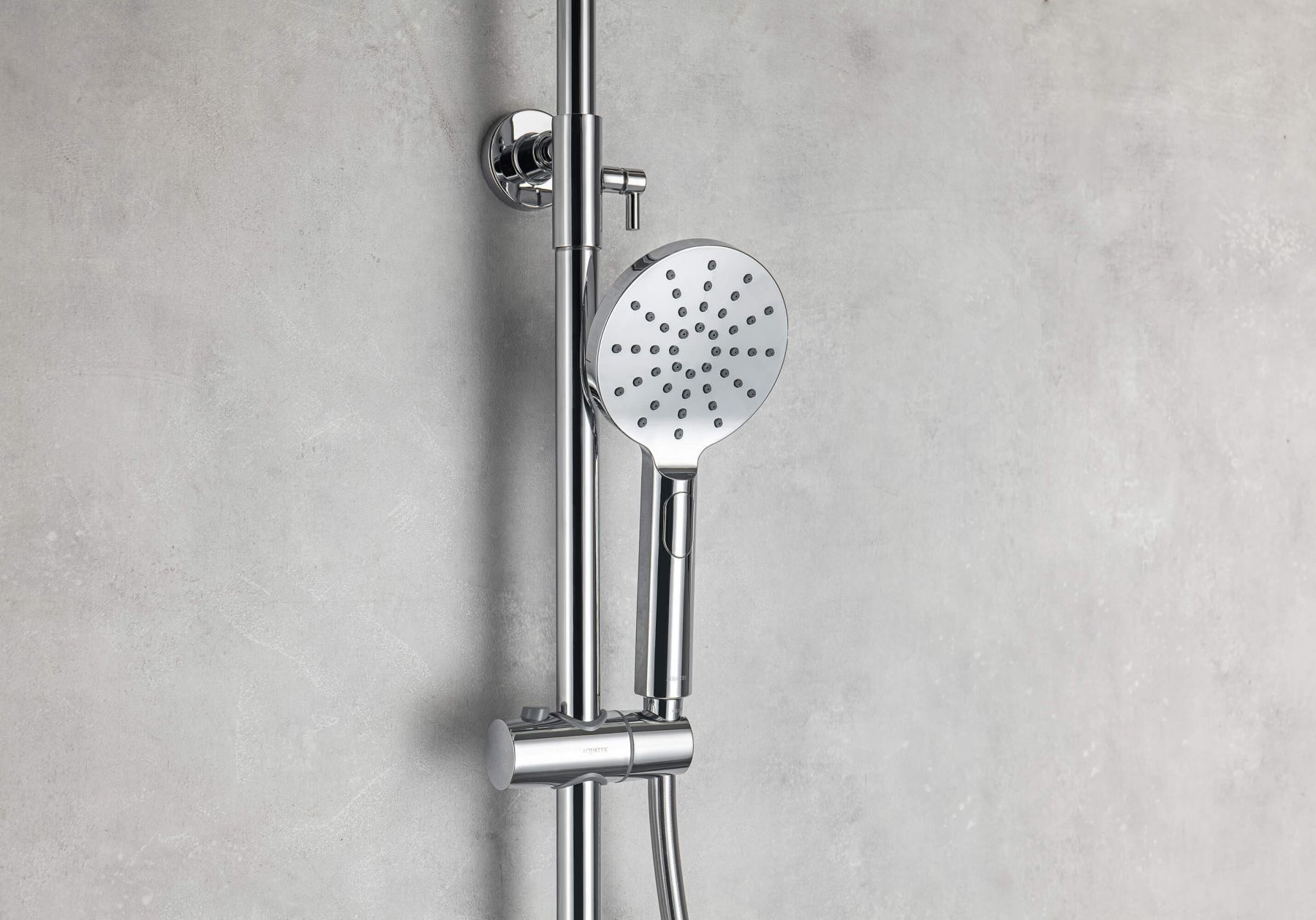 • регулируемая душевая штанга из нержавеющей стали, выдвигающаяся до 1114 мм в высоту