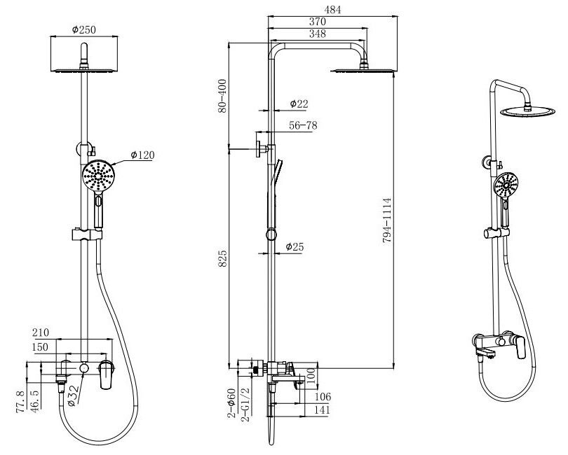 • регулируемая душевая штанга из нержавеющей стали, выдвигающаяся до 1114 мм в высоту