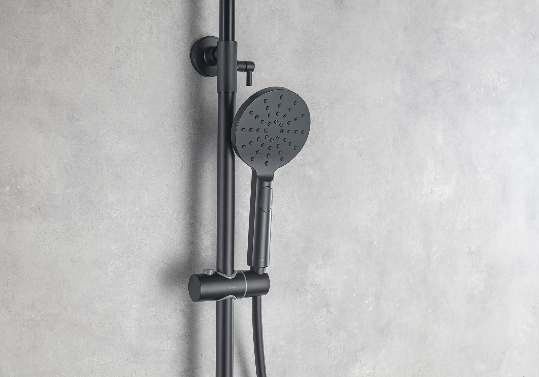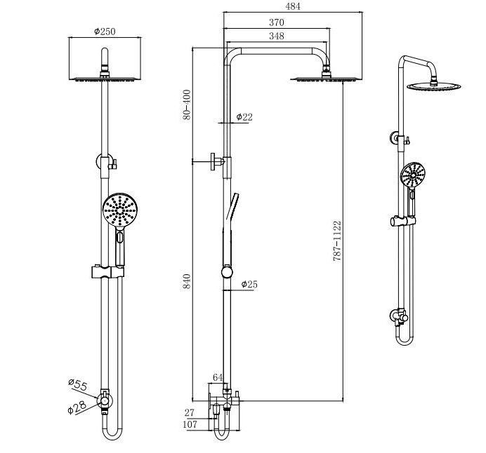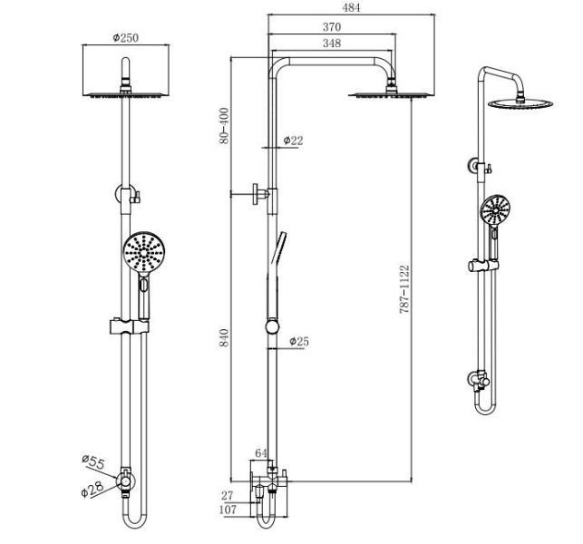 • регулируемая душевая штанга из нержавеющей стали, выдвигающаяся до 1122 мм в высоту
