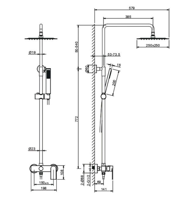 Размер верхнего душа, см:25