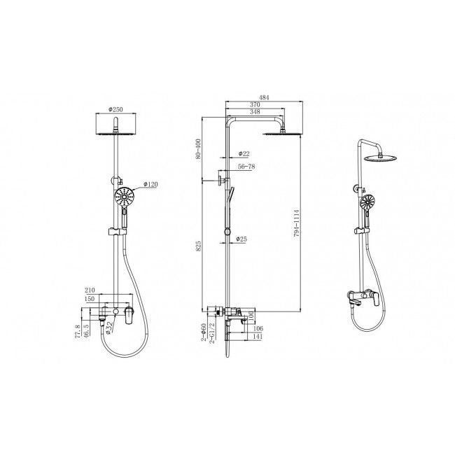 Душевая стойка Aquatek Вега AQ2040BGM оружейная сталь Основные
