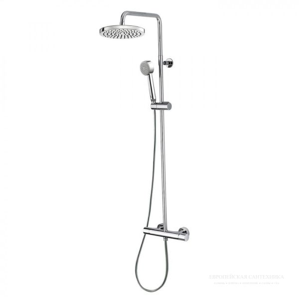 Хромированное покрытие не только придает системе стильный блеск, но и обеспечивает высокую устойчивость к коррозии и износу, что гарантирует долговечность и легкость в уходе. Настенное крепление системы обеспечивает компактное использование пространства, делая её подходящей для ванных комнат любого размера. Система оснащена удобным смесителем, который позволяет легко регулировать температуру и напор воды, обеспечивая максимальный комфорт во время использования.