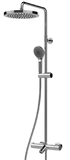 Bossini ABS Elios душевая система Ø250 Termo: термостат с изливом, стойка с верхним поворотным душем ABS Ø 250 мм, с ручным душем ABS SYNCRONIA/2 Ø100 мм на 3 функции, шланг из армированного нейлона Cromolux 1500 мм, цвет хром.