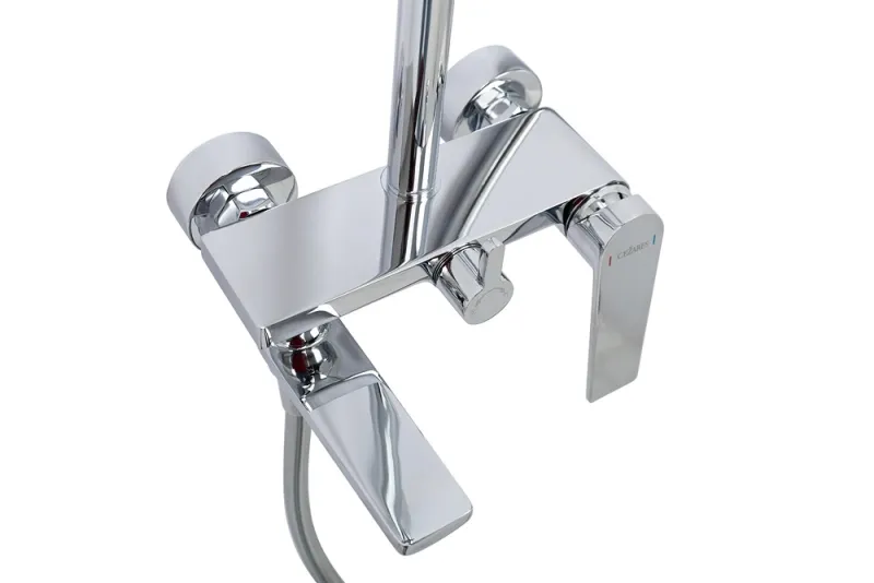 Душевая стойка Cezares COMFORT-CVD-01 хромДушевая стойка Cezares COMFORT-CVD-01. Цвет-хром. Поворотный излив. В комплект поставки входит: душевая стойка, смеситель, крепеж, шланг, лейка, держатель для душа, переключатель потоков, излив
