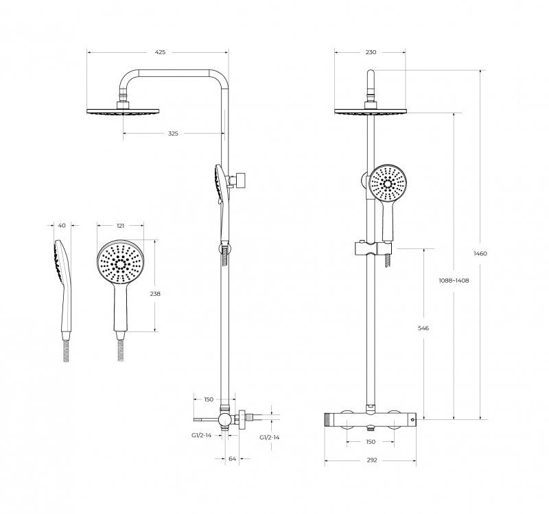 Душевая стойка CEZARES RELAX-CD-GM оружейная сталь