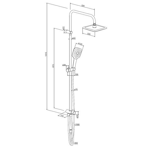удлиненная штанга позволит установить душ на нужной для вас высоте;