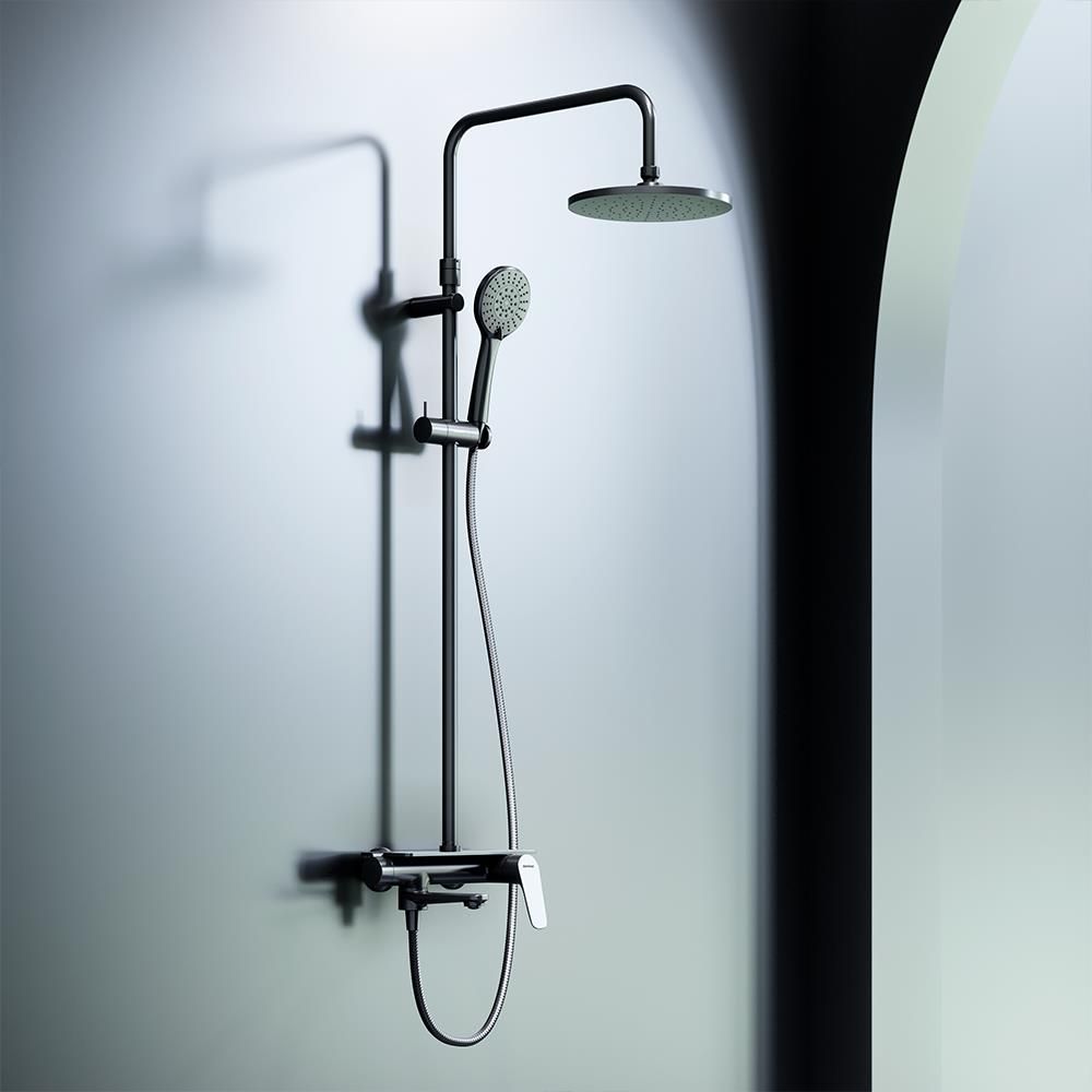 Абсолютно новый взгляд на классику - душевая система Jupiter в матовом черном исполнении. Минималистичные тонкие линии и плавные углы будут пленительно приковывать взгляд и завершать интерьерную композицию ванной комнаты. Термостатический картридж новейшего поколения моментально реагирует на изменения температуры или давления и защитит вас от ожога даже при внезапном откоючении холодной воды. Продуманные детали для удобства использования: штанга регулируется по высоте в диапазоне от 1030 до 1460 мм, обеспечивая комфорт для людей любого роста. Глубокий матовый цвет дополнен покрытием High Gloss, которое уберегает поверхность душевой системы от мелких повреждений. Приятно удивит многофункциональная полочка, встроенная в смеситель для хранения нужных средств для ухода.