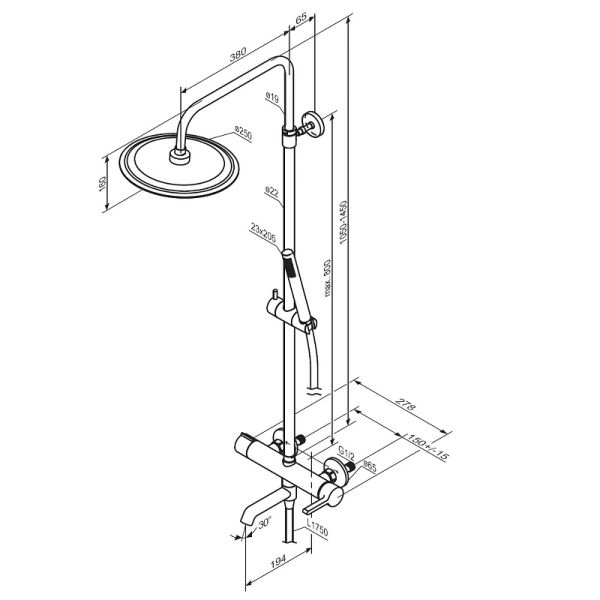 Размер верхнего душа, см:25