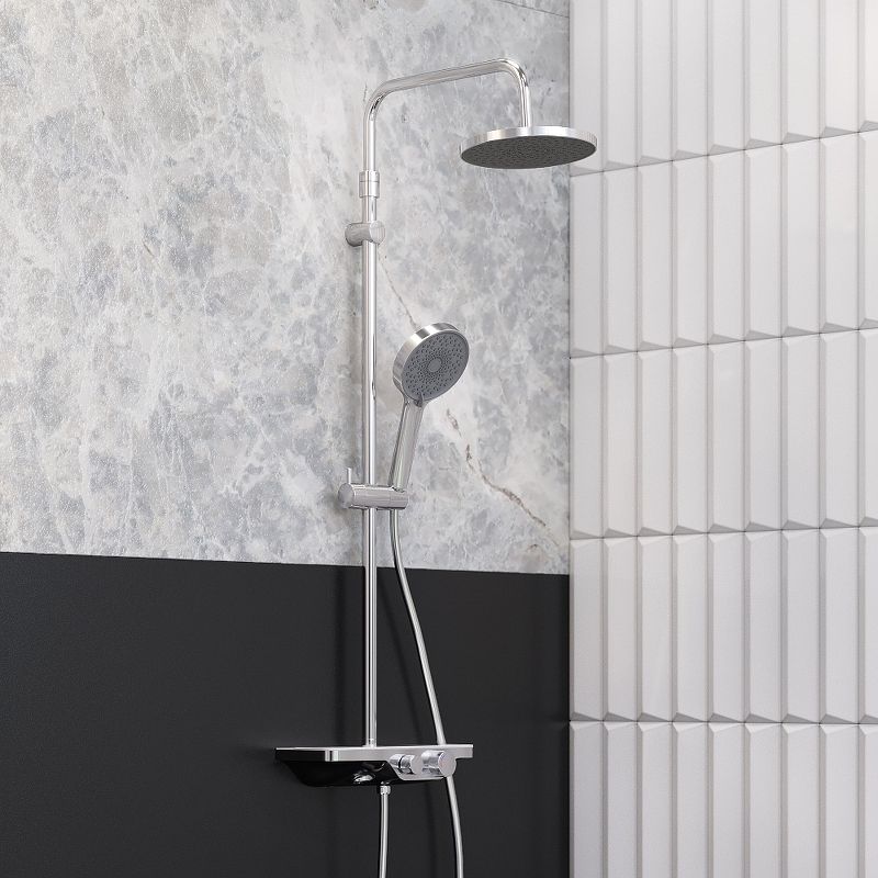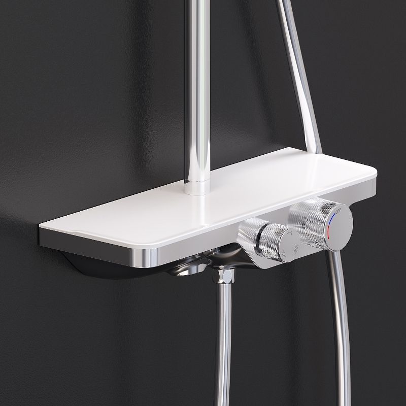 Душевая стойка Damixa Scandinavian Pure 947730000 ХромДушевая система из коллекции Apollo станет центром притяжения ванной комнаты. Плавные линии в сочетании с массивными формами создают исключительную коллаборацию стиля. Разумная экологичность: благодаря керамическому картриджу ColdStart, при включении смесителя автоматически запускается режим подачи холодной воды. Повышение температуры можно плавно регулировать поворотом правой ручки. Таким образом, расход горячей воды и энергии сокращается на 40%. Непревзойдённый комфорт и удобство: смеситель выполнен в виде компактной полочки из закаленного стекла, где вы можете хранить все необходимые вещи. Настоящее SPA прямо у вас дома: наслаждайтесь увеличенным размером тропической лейки с регулируемым углом наклона и 3-мя режимами ручного душа. Благодаря телескопической штанге с диапазоном регулировки в 400 мм водные процедуры будут одинаково комфортны абсолютно для всех членов семьи. Специальное PVD-покрытие гарантирует чрезвычайную прочность душевой системы, надежно защищая хромовое покрытие от механических повреждений, коррозии и потери цвета. Поддерживать чистоту стало еще проще благодаря функции очистки резиновых форсунок Rub&Clean.