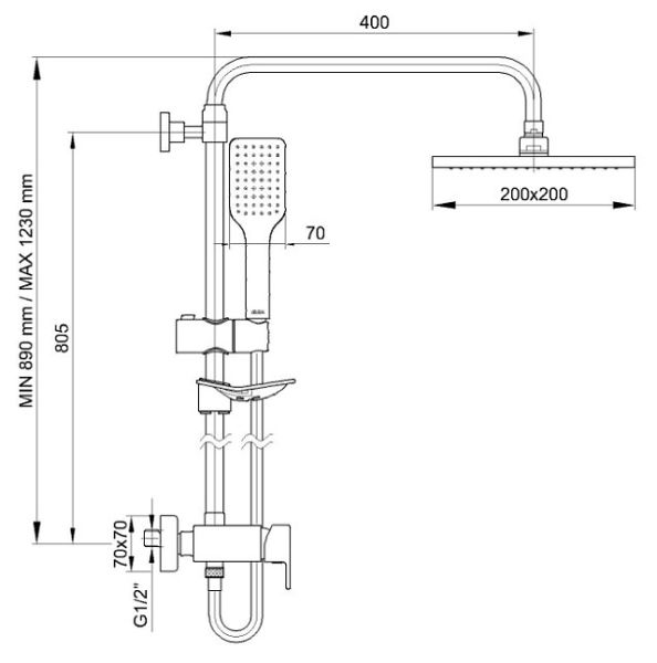 Душевая стойка E.C.A используется в ванных комнатах. Модель оснащена квадратным верхним душем и прямоугольной лейкой. Модель оснащена ограничителем температуры и керамическим картриджем, обеспечивающим контроль и точность при выборе напора и температуры воды. Дополнительные характеристики: