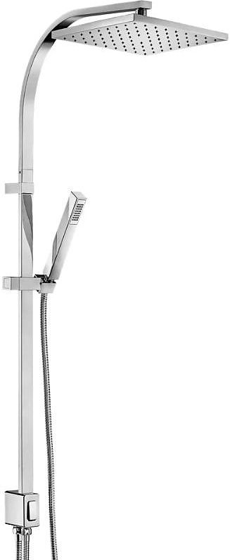 Душевая стойка без смесителя E.C.A используется в ванных комнатах. Модель оснащена квадратным верхним душем и прямоугольной лейкой. Изделие выполнено из латуни, которая отличается прочностью, долговечностью и устойчивостью к перепадам температуры.Дополнительные характеристики: