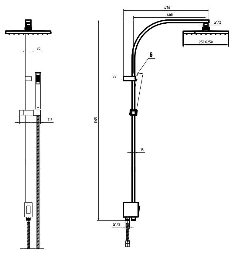 - Вынос верхнего душа: 400 мм