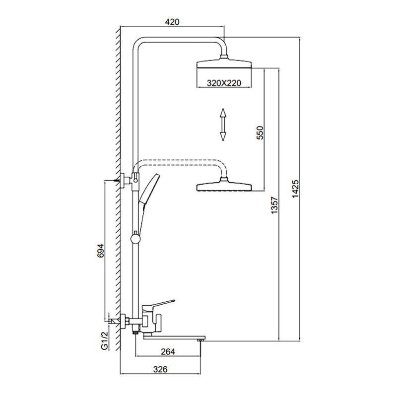• Размер верхнего душа, см: