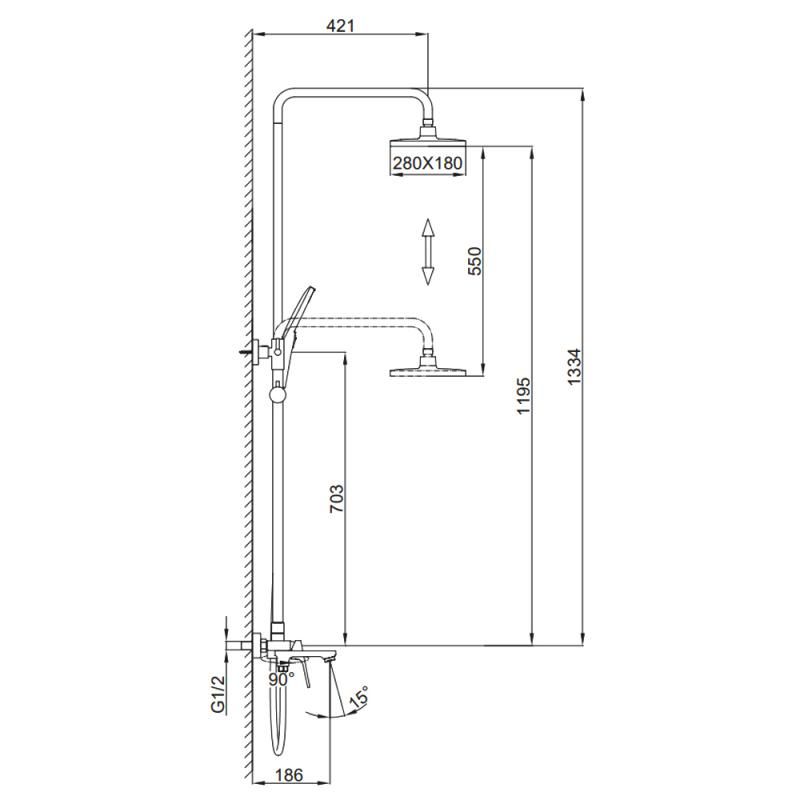 Размер верхнего душа, см:28