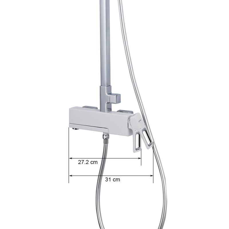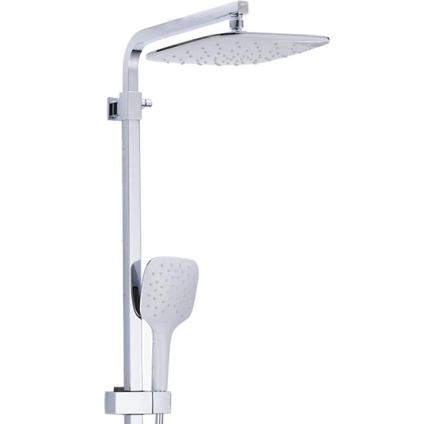 Душевая стойка Gappo G2417-8 выполнена из латуни, состоит из верхнего тропического душа, однорычажного смесителя с изливом, который является переключателем на лейку, ручной лейки с держателем и душевым шлангом (150 см). Душевая стойка легко очищается от известкового налета, а латунный корпус прослужит долгое время. Цвет - белый/хром.