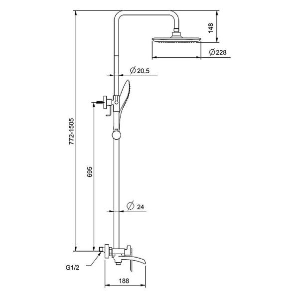 Размер верхнего душа, см:22.8