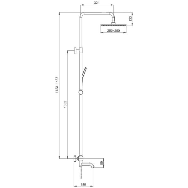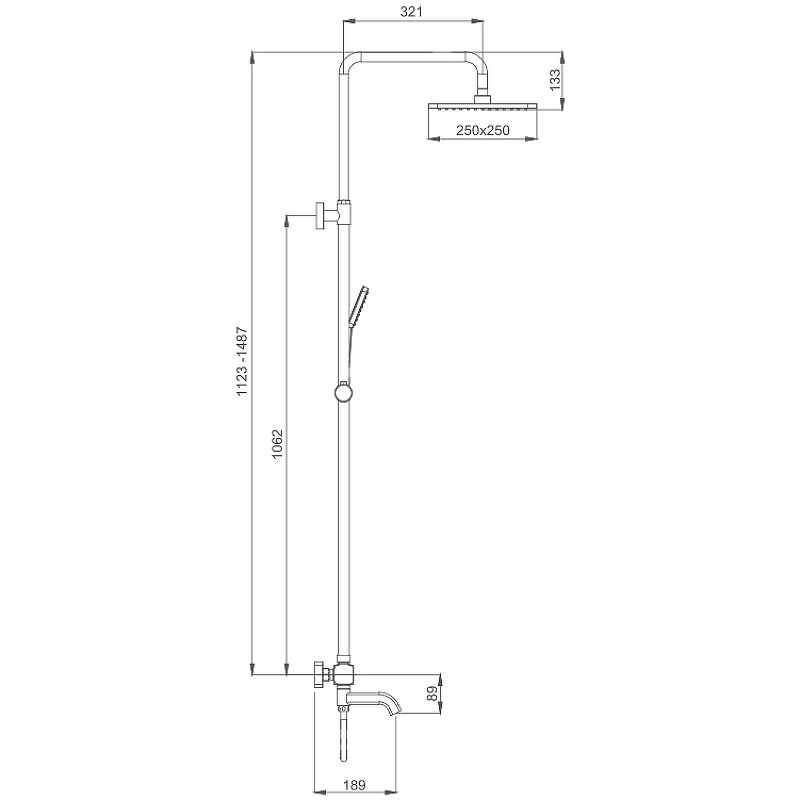 - Размер верхнего душа: 250 мм.