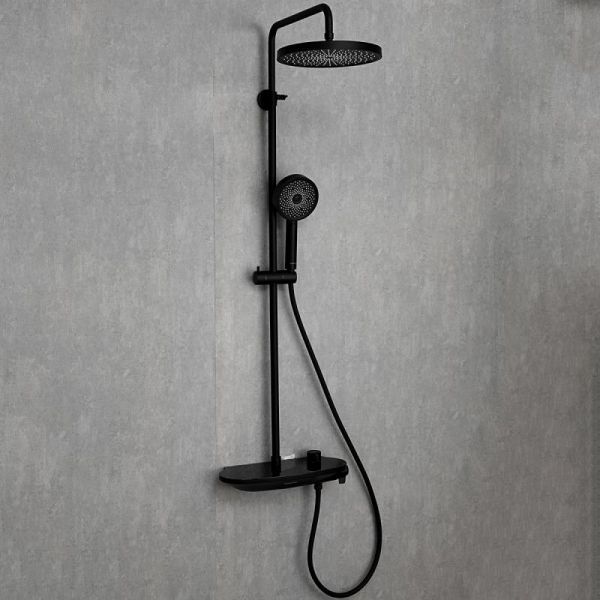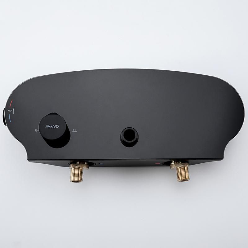 Черная душевая система со смесителем полкой Gappo G2495-86, смеситель из латуни с каскадным аэратором (водопад). Тропический душ системы и ручной душ изготовлены из ABS-пластика со системой легкой очистки от известкового камня.