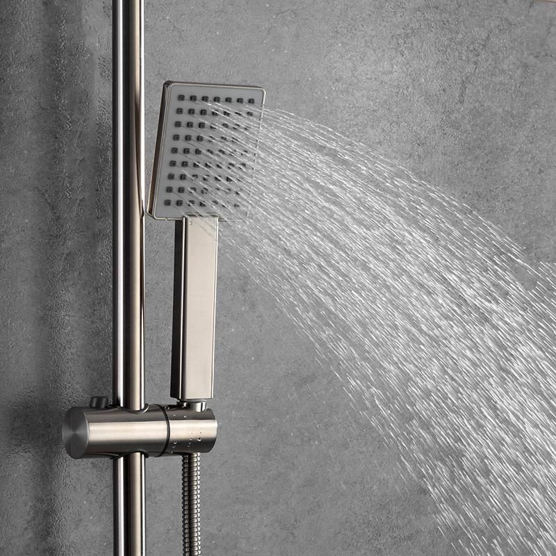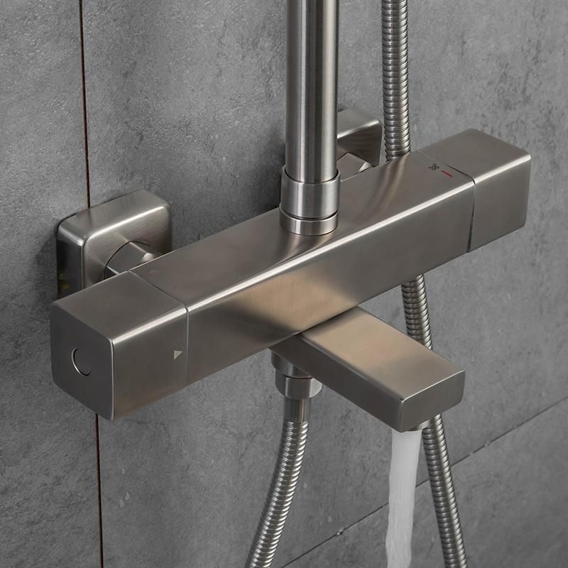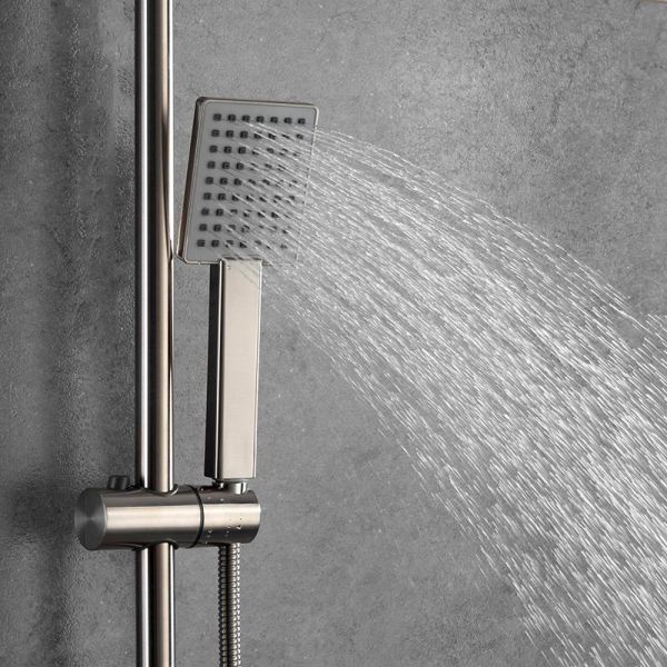 Душевая стойка Gappo G2499-40 с термостатом изготовлена из нержавеющей стали. Состоит из верхнего тропического душа, смесителя с изливом, ручной лейки (1 режим ) с держателем и душевым шлангом (150 см). Душевая стойка легко очищается от известкового налета. Цвет - сатин.