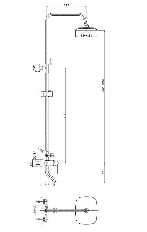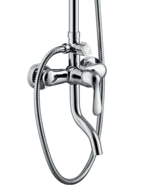Душевая система Haiba.Изготовлена из высококачественной латуни.Прекрасный тропический душ.Излив для наполнения ванны.Душевая штанга регулируется по высоте от 80 см до 121 см.