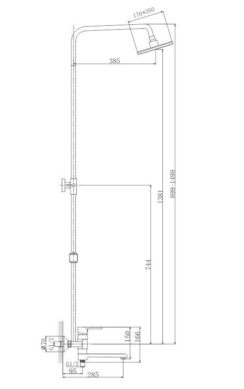 Душевая система Haiba.Изготовлена из высококачественной латуни.Прекрасный тропический душ.Излив для наполнения ванны.Душевая штанга регулируется по высоте от 89,9 см до 149,9 см.